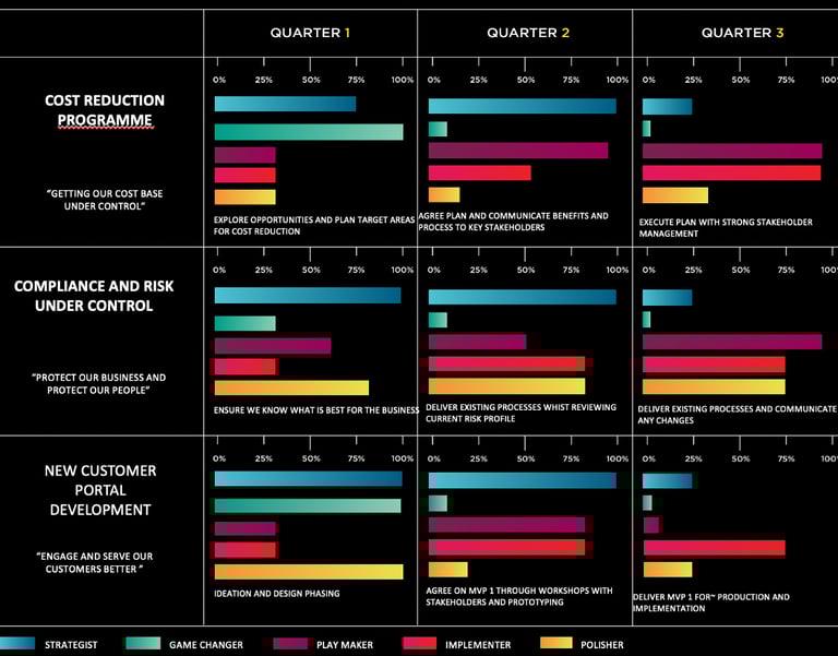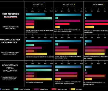 Most analysts agree that a change of mindset is an essential precursor to transformation success. We analyze impact scores at the individual, team and organization level to expose natural proclivity of people towards the direction of change. This can be used to reflect and course correct for transformation leaders as well as change managers as part of their ongoing programs.